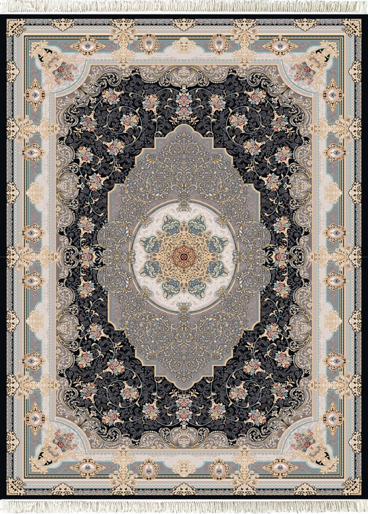 این فرش در رنگ های سرمه ای فیلی دودی طلاکوب در همه سایز بافته شده و برای دکوراسیون مدرن و کلاسیک مناسب است.