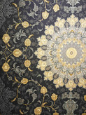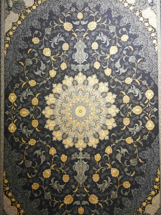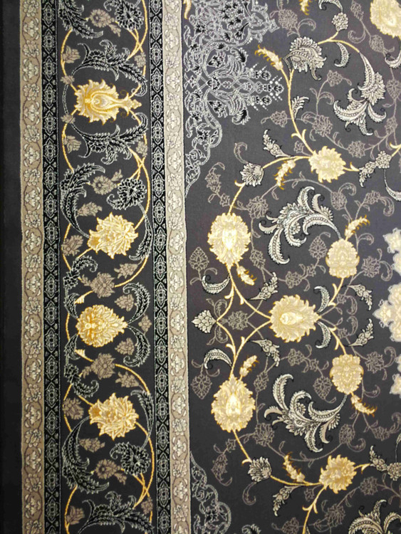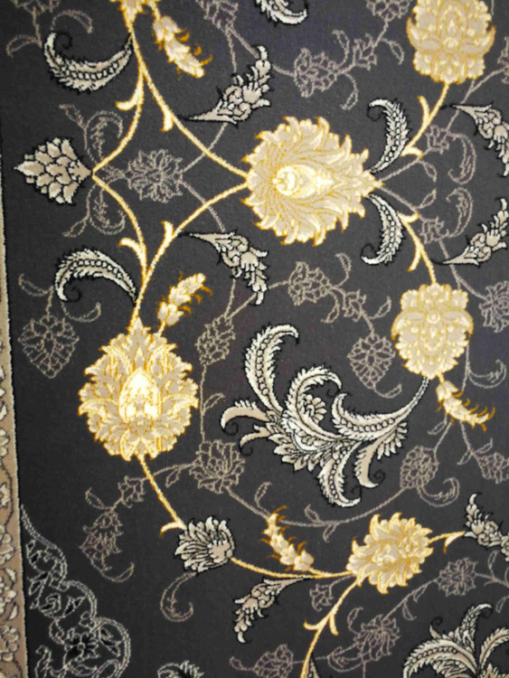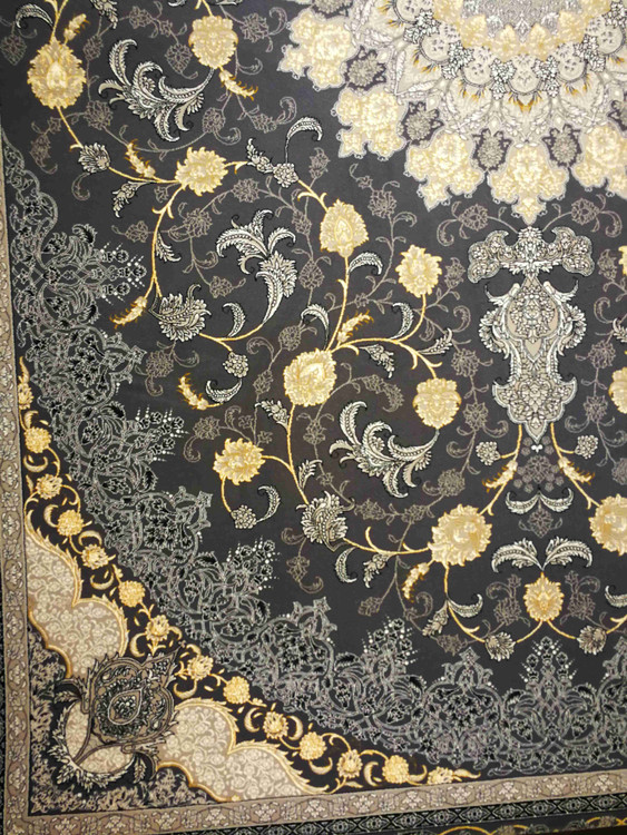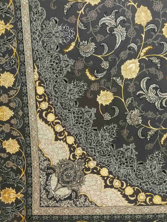 این فرش در رنگ های سرمه ای فیلی دودی طلاکوب در همه سایز بافته شده و برای دکوراسیون مدرن و کلاسیک مناسب است.