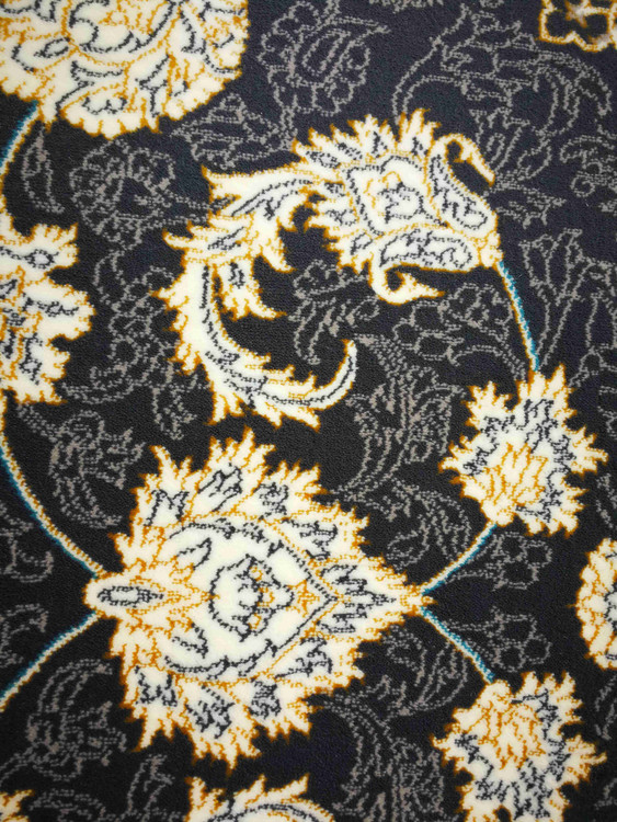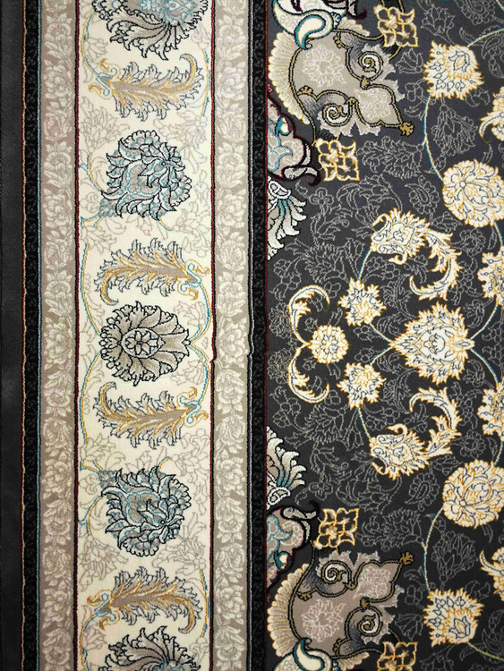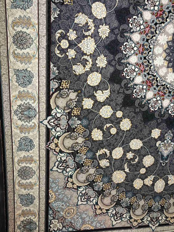 این فرش در رنگ های سرمه ای فیلی دودی طلاکوب در همه سایز بافته شده و برای دکوراسیون مدرن و کلاسیک مناسب است.