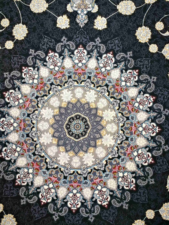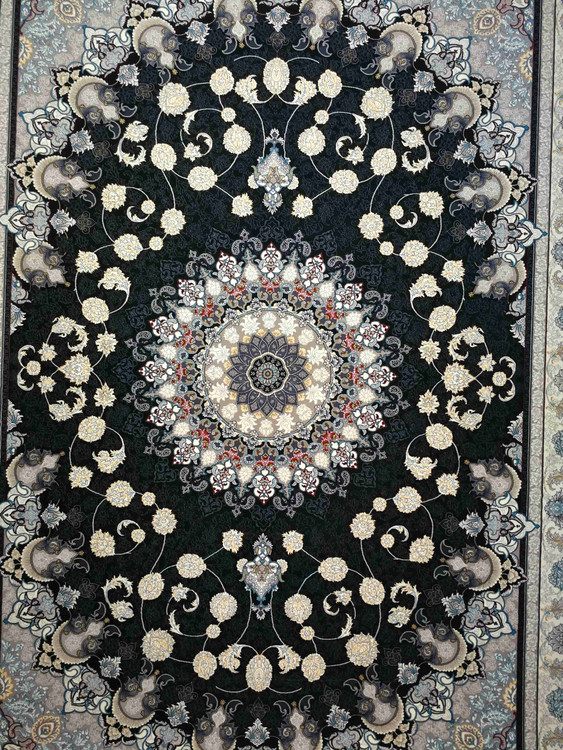 این فرش در رنگ های سرمه ای فیلی دودی طلاکوب در همه سایز بافته شده و برای دکوراسیون مدرن و کلاسیک مناسب است.