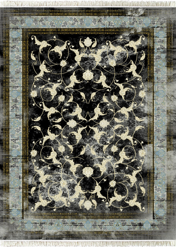 این فرش در رنگ های سرمه ای فیلی دودی طلاکوب در همه سایز بافته شده و برای دکوراسیون مدرن و کلاسیک مناسب است.