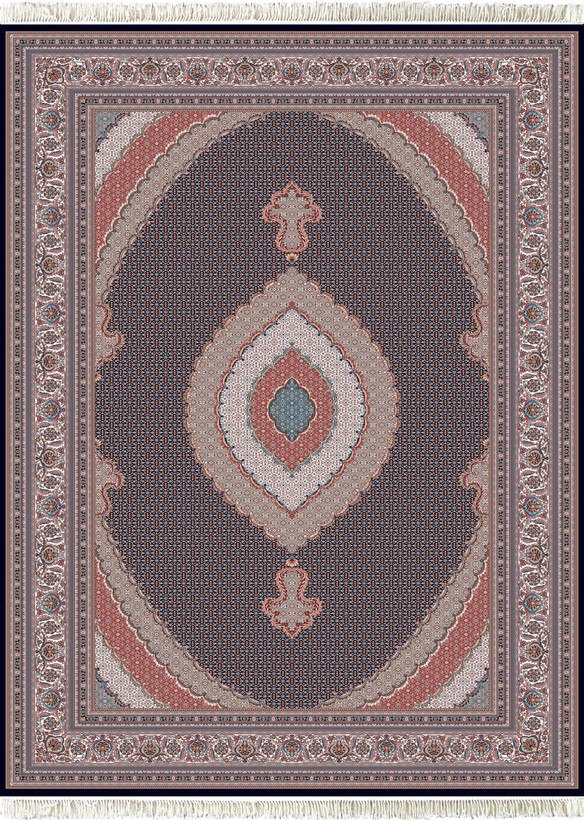 فرش 700شانه تراکم 2550 ماهی سرمه ای حاشیه کرم
