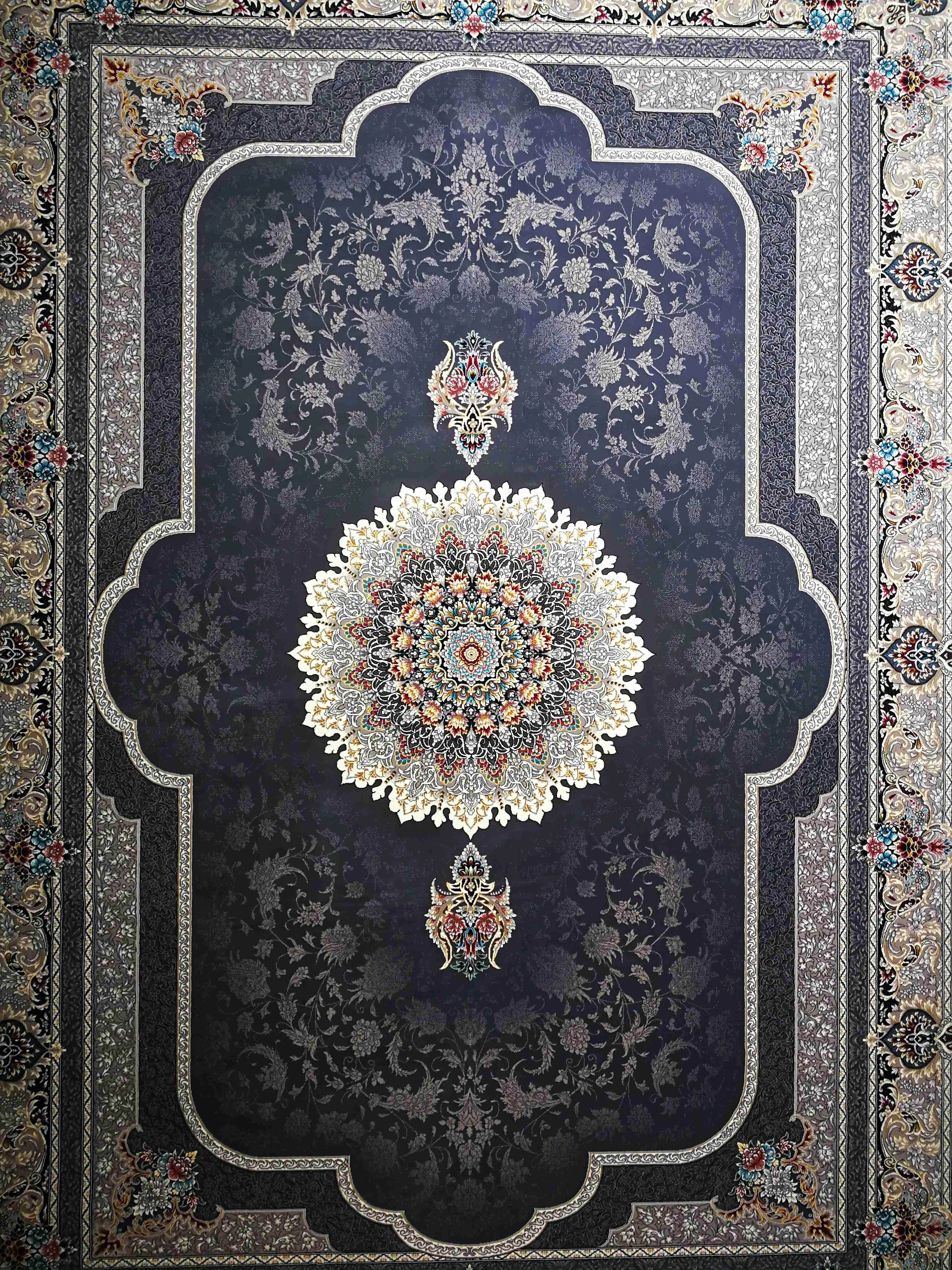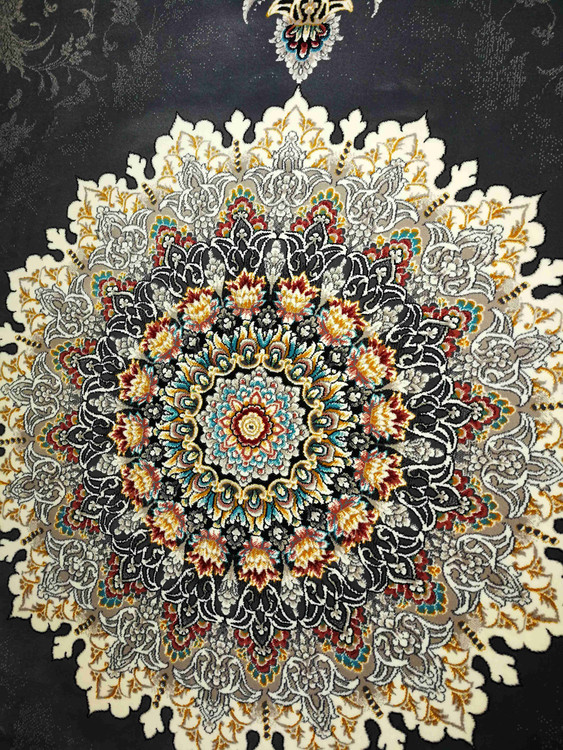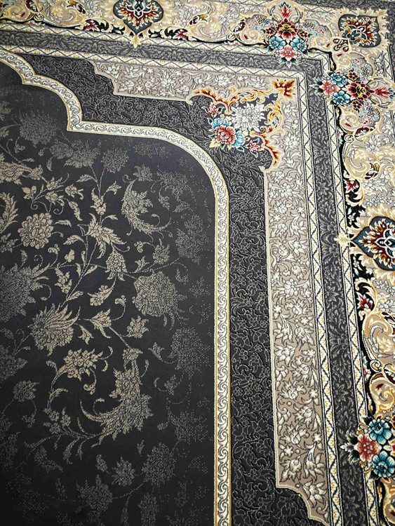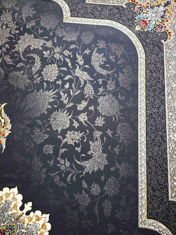 این فرش در رنگ های سرمه ای فیلی دودی طلاکوب در همه سایز بافته شده و برای دکوراسیون مدرن و کلاسیک مناسب است.